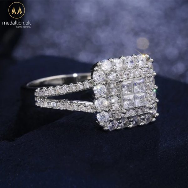 Gorgeous White Gold Plated Square Shape CZ Ring