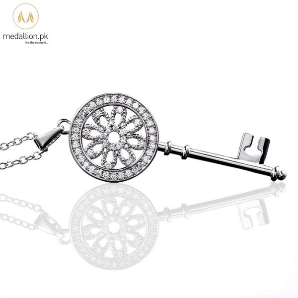 Luxury White Gold Plated Key Shape AAA+ CZ Necklace