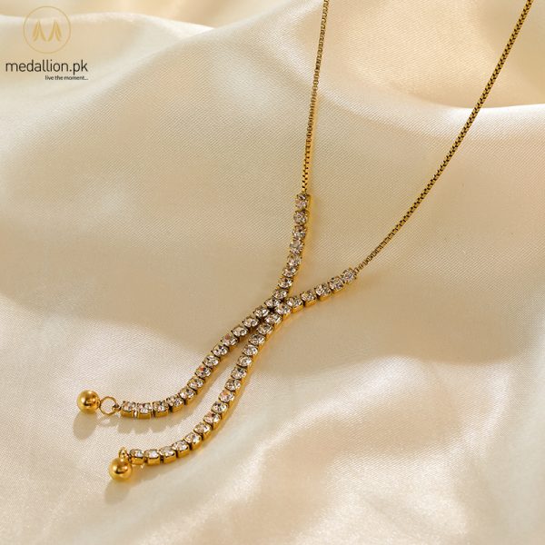 Stainless Steel Gold Plated Tassel Chain CZ Necklace