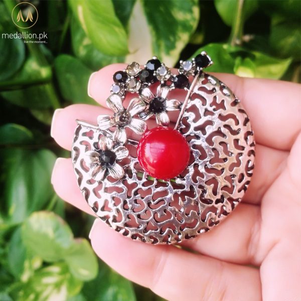Vintage Black & Red Simulated Pearl Brooch Pin
