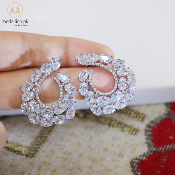 White Gold Plated Flower Shape AAA+ CZ Earrings