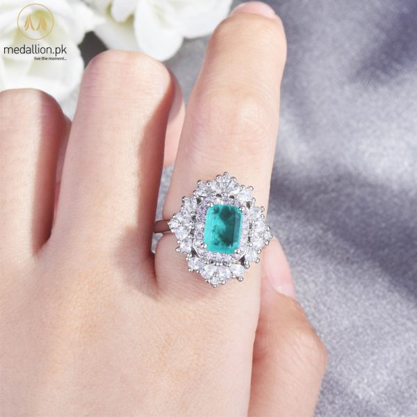 White Gold Plated Paraiba Tourmaline AAA+ CZ Ring